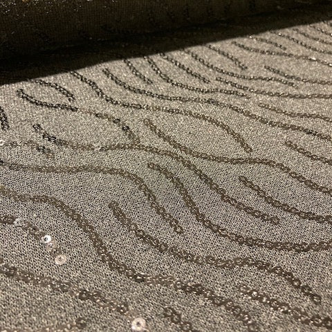 Een zachte trui stof met aan de buiten zijde pailletten ideaal voor het naaien van een kokker rok, recht kleed of topje