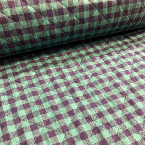 Een doorgestikte stof met aan een zijde ruit motief en andere zijde effen katoen ideaal voor het naaien van een jas, vest of accessoires als sjaal toiletzak of sportzak