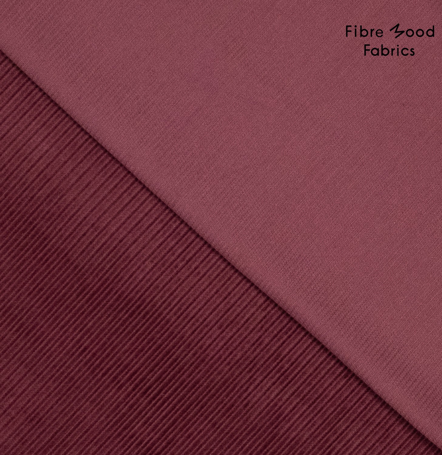 Een oneven ( dik en dunne rib) corduroy in donker bordeaux - ideaal om een broek, rok, recht kleed of vest te maken.