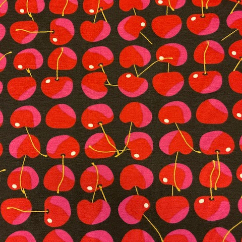 Een T- shirt stof me kriekjes print ideaal voor het naaien van t- shirt, short, rok, kleed ondergoed of pyjama