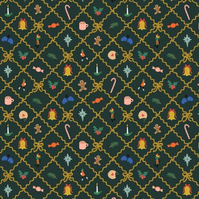 Kerst figuren met gouden strikjes op donkergroen achtergrond, ideaal voor kerst versiering