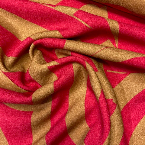 Een zeer soepel vallende viscose crepe met beige en fel roze abstracte tekening.