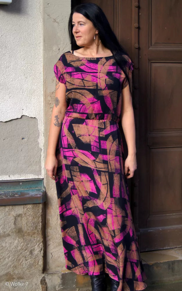Een soepelvallende viscose met abstracte print ideaal voor het naaien van lange rok, kleed, hemd of losse broek