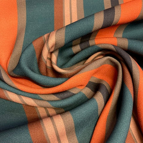Een soepel vallende polyester stof met een strepen print ideaal voor het naaien van lange rok, kleed, top of losse broek